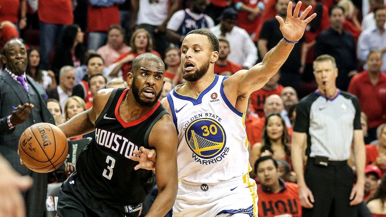 Kevin Arnovitz, ESPN.com: Al ver la serie Warriors-Rockets nos hacemos testigos de una demostración fascinante de las tendencias prominentes de la última década en la NBA. Si viajamos en una máquina para devolvernos 20 años en el tiempo y proyectamos estos partidos en la pared de un edificio a una audiencia de aficionados al baloncesto de toda una vida y terminarían con la comida atascada. Aquí tenemos dos equipos, uno que juega a un ritmo vertiginoso con una alineación que habría sido incomprensible. El otro equipo, entrenado por un promotor de gran parte de estas tendencias, presenta un ataque fundamentado en el pick-and-roll considerado una excentricidad no hace mucho tiempo. Ambos equipos tienen la cifra combinada de 142 intentos de triples durante los dos primeros encuentros de la serie, y ambos muestran una defensiva basada fuertemente en cambios, diseñada a fin de maximizar la versatilidad de sus defensores y tomando en cuenta sus encestadores.