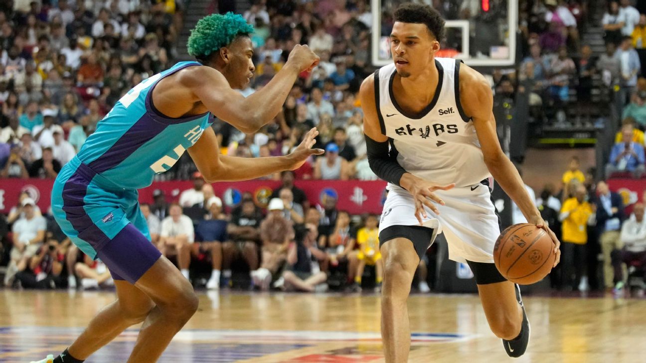 Facing off against the Charlotte Hornets and No. 2 pick Brandon Miller, Wembanyama, the No. 1 overall pick in this year's draft, helped the Spurs win 76-68 in front of a sellout crowd at the Thomas & Mack Center.