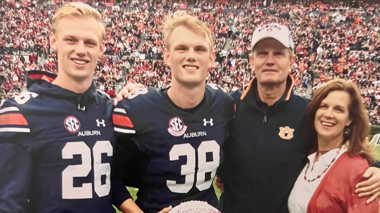 It wasn’t a great weekend for the Carlsons from the start. Hans had a layover in Chicago because he was on his way back from watching his youngest son, Anders Carlson. Then a redshirt freshman at Auburn, where he followed in Daniel’s footsteps, Anders missed a 52-yard field goal in the fourth quarter of a 22-21 loss to LSU.