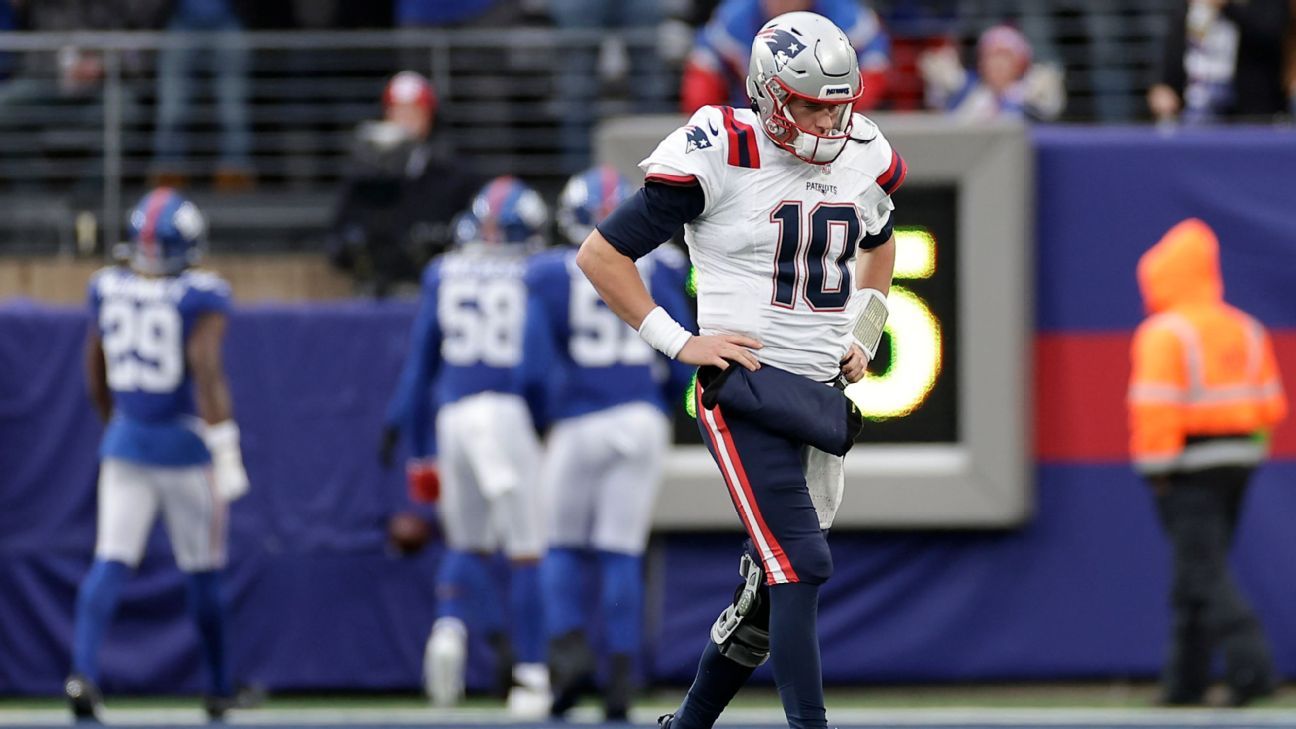 El mariscal de campo fue dejado en las laterales para la segunda mitad del partido contra los Giants, Bailey Zappe lo reemplazó