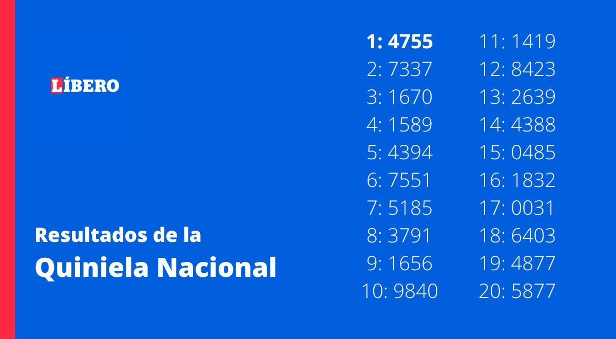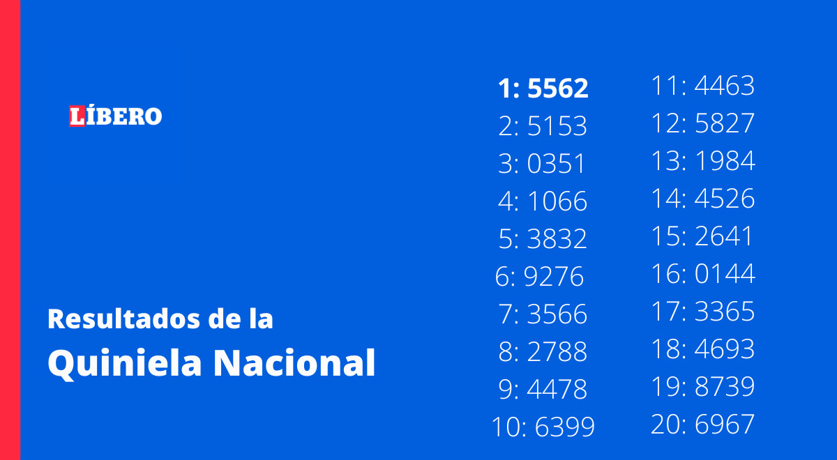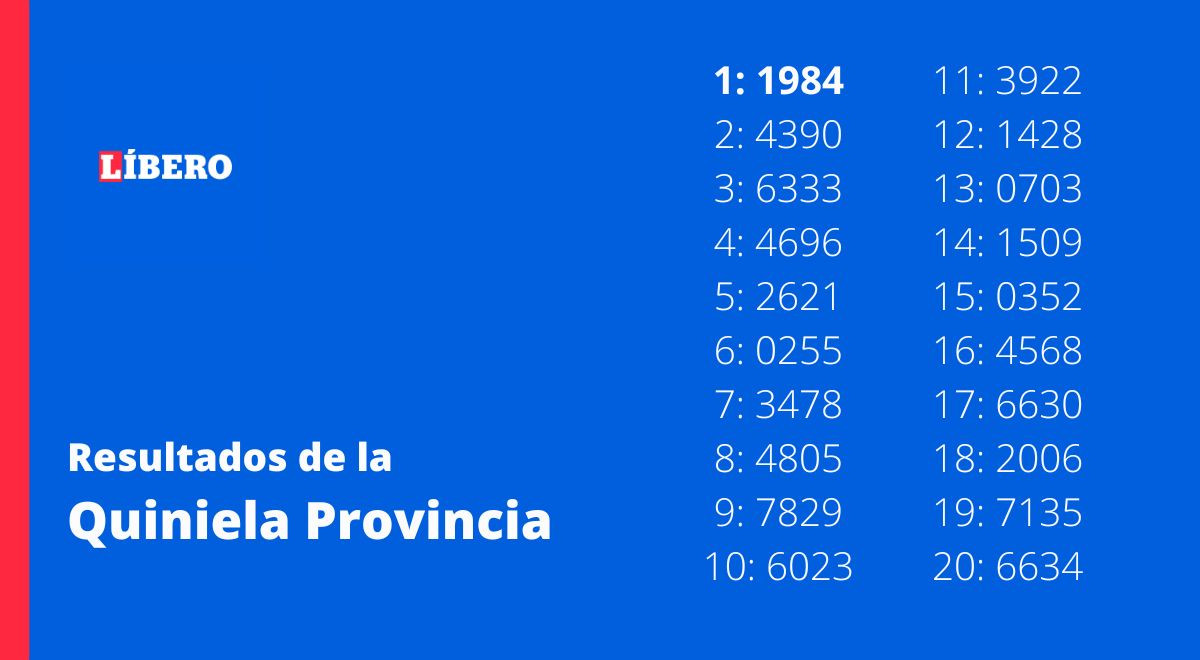 El sorteo de la Quiniela se realiza de lunes a sábado y podrás conocer los resultados de estás ediciones en la web del Diario Líbero porque cubrimos todas las ediciones. No esperes más y participa porque podrías ser uno de los ganadores.
