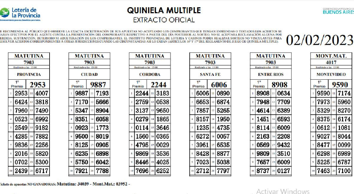 Resultados de la Quiniela de hoy en vivo: La Matutina Provincial