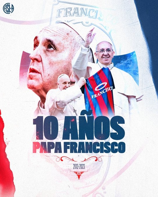 El papa Francisco conmemoró el décimo aniversario de su pontificado y San Lorenzo, equipo del que es hincha le rendirá un homenaje en el partido ante Sarmiento de Resistencia, válido por los treintaidosavos de final de la Copa Argentina.
