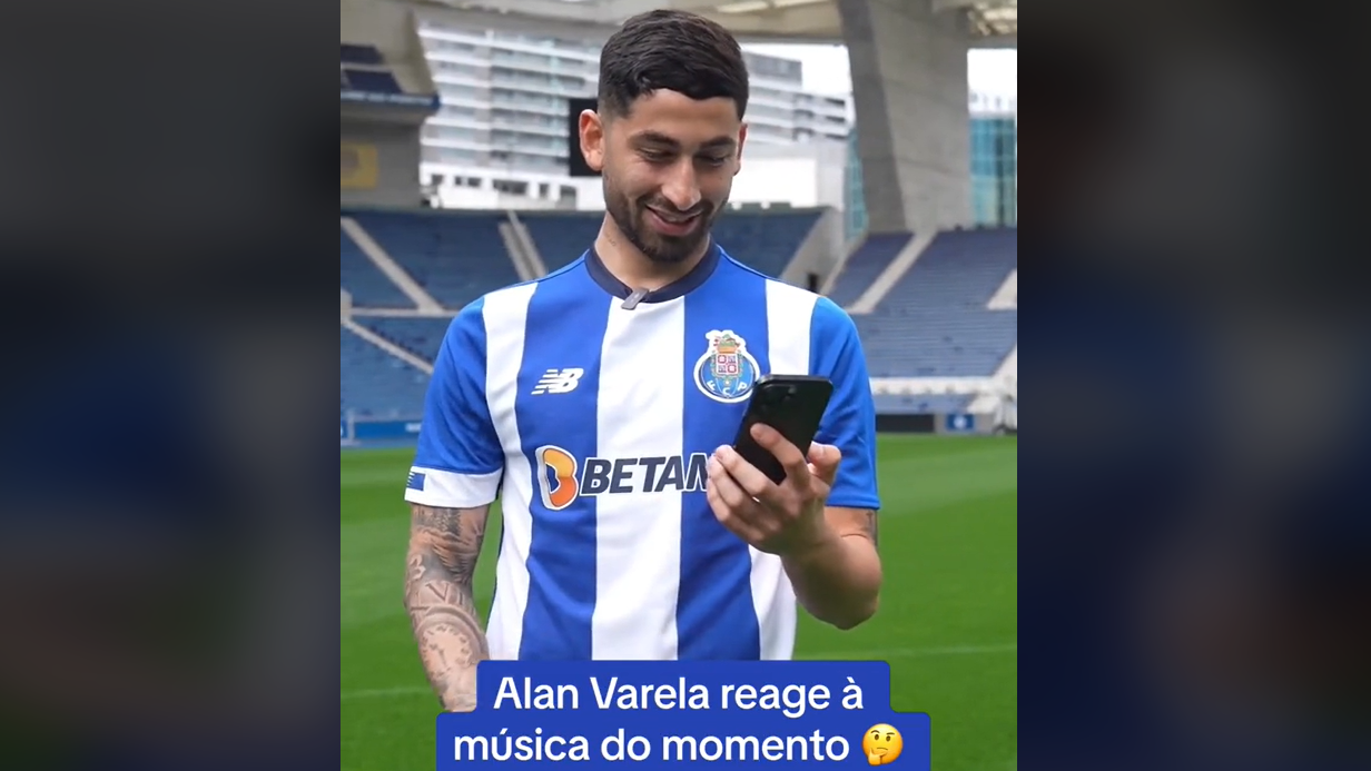 Mediante la cuenta oficial de Porto en Tik-Tok muestra cómo Varela ve en un celular un video de la hinchada cantando el tema que le hicieron, que dice: "Alan Varela joga muito, Olha a qualidade que ele tem” (Alan Varela juega mucho, que calidad que tiene él).