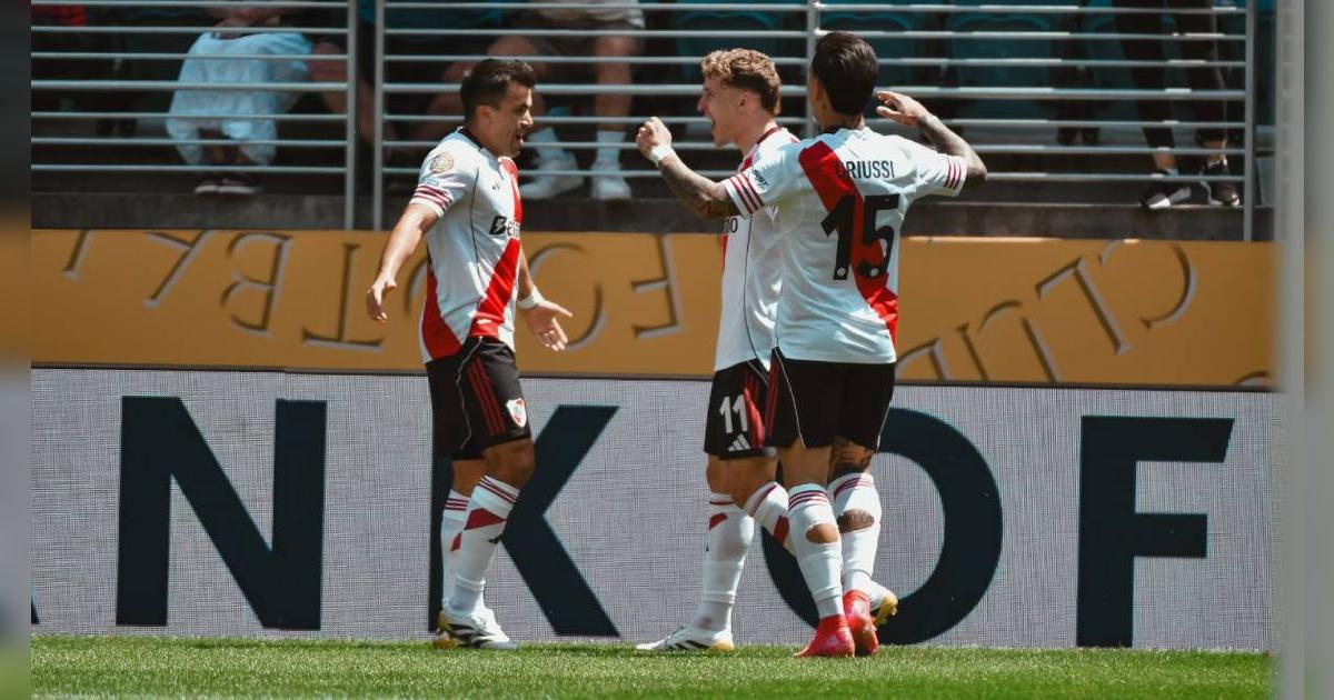 Tras un error en salida del arquero Shusaku, el delantero de River Plate, Sebastián Driussi firmó el 2-0 en el arranque del partido.