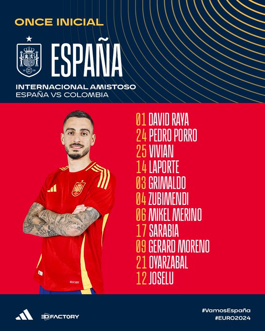 ALINEACIONES, ESPAÑA VS COLOMBIA
