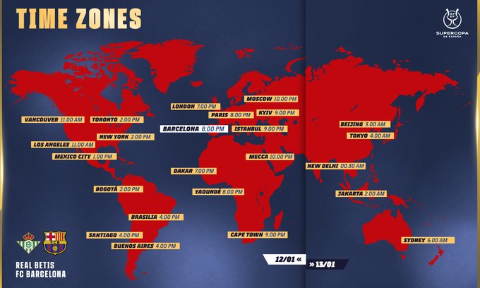 HORARIOS DEL PARTIDO POR LA SUPERCOPA