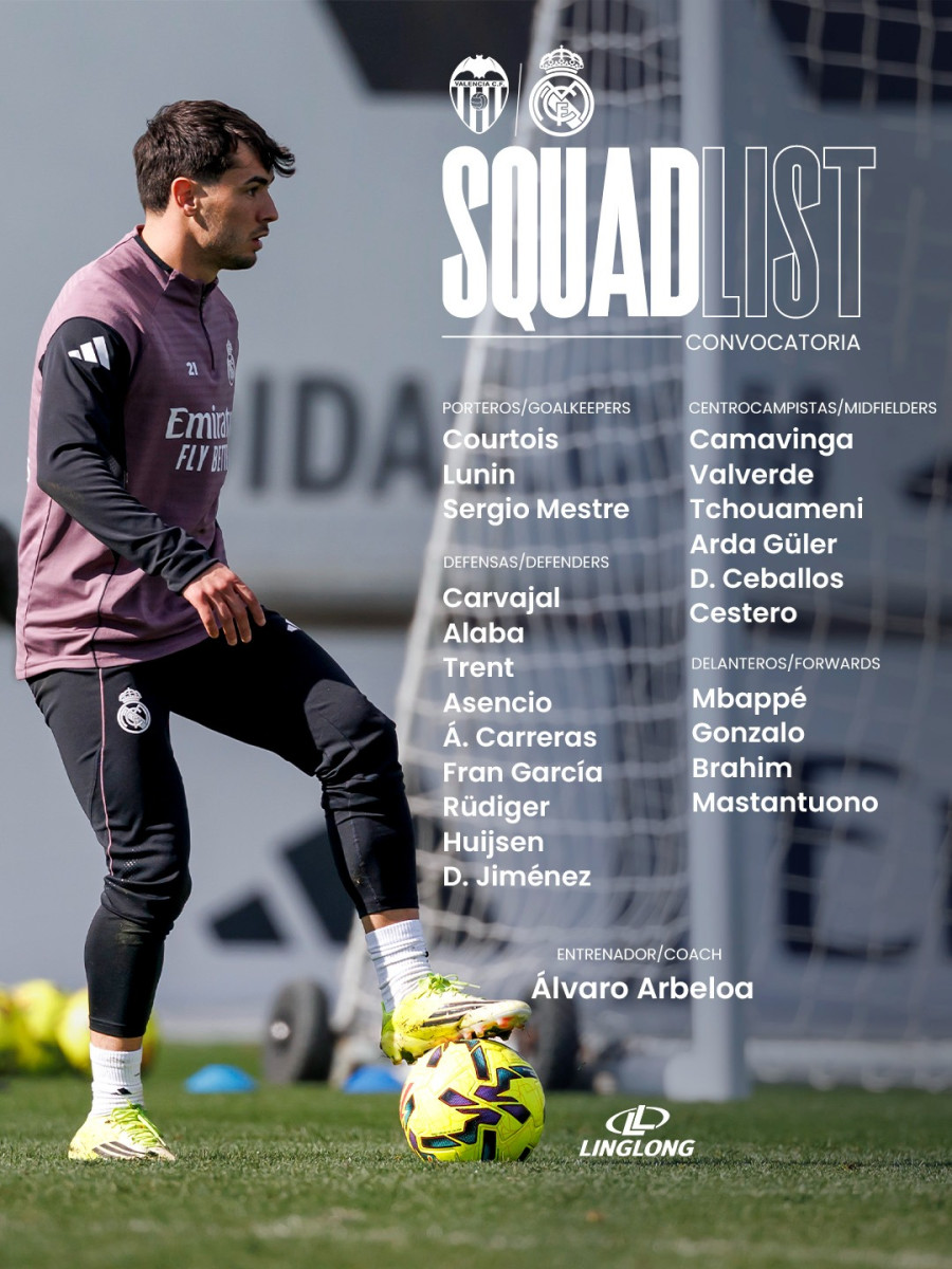 Real Madrid presentó su lista de jugadores convocados para el duelo contra Valencia.