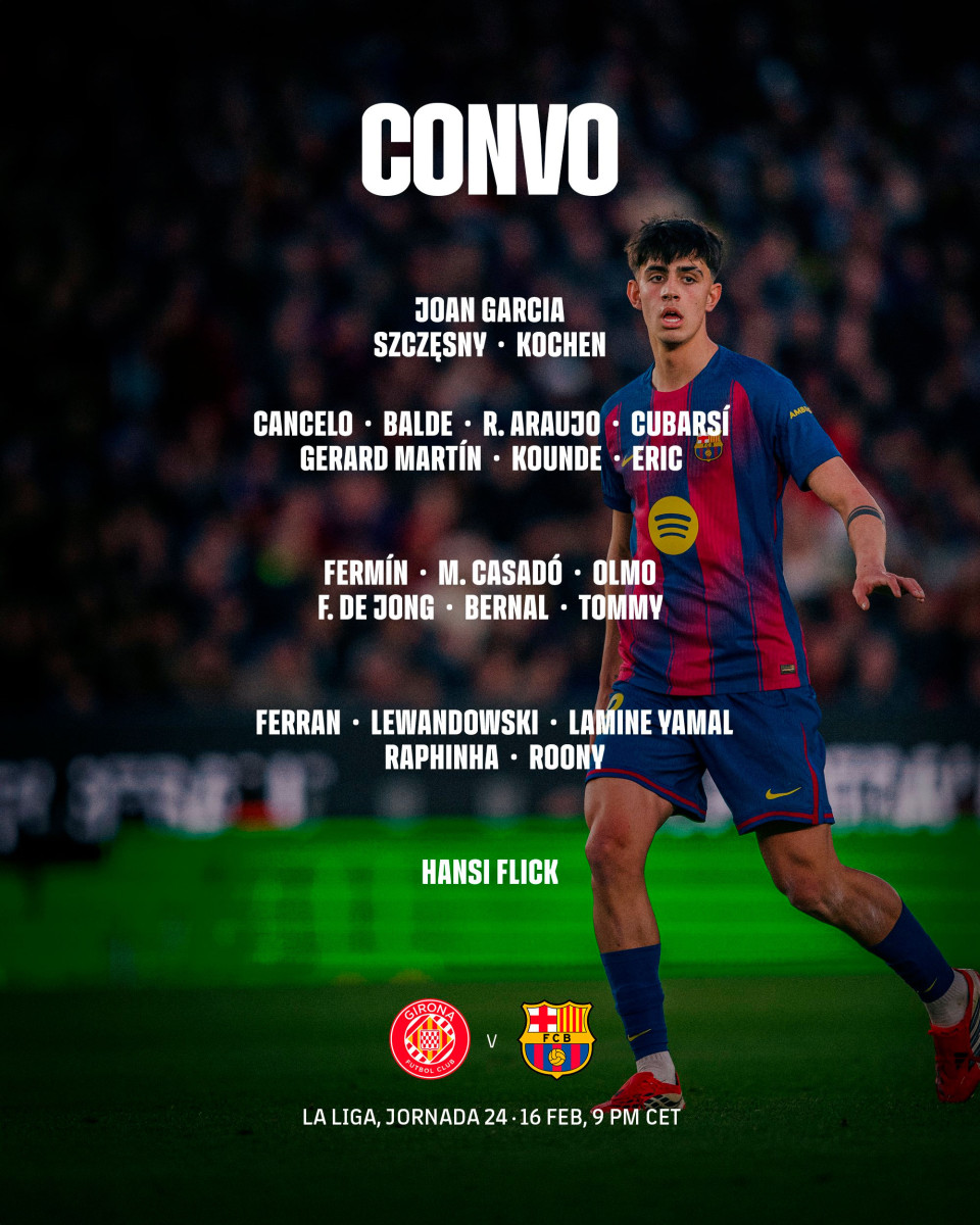 Barcelona: Joan García; Jules Koundé, Pau Cubarsí, Eric García, Alejandro Balde; Frenkie de Jong, Fermín López, Dani Olmo; Lamine Yamal, Ferran Torres, Robert Lewandowski.