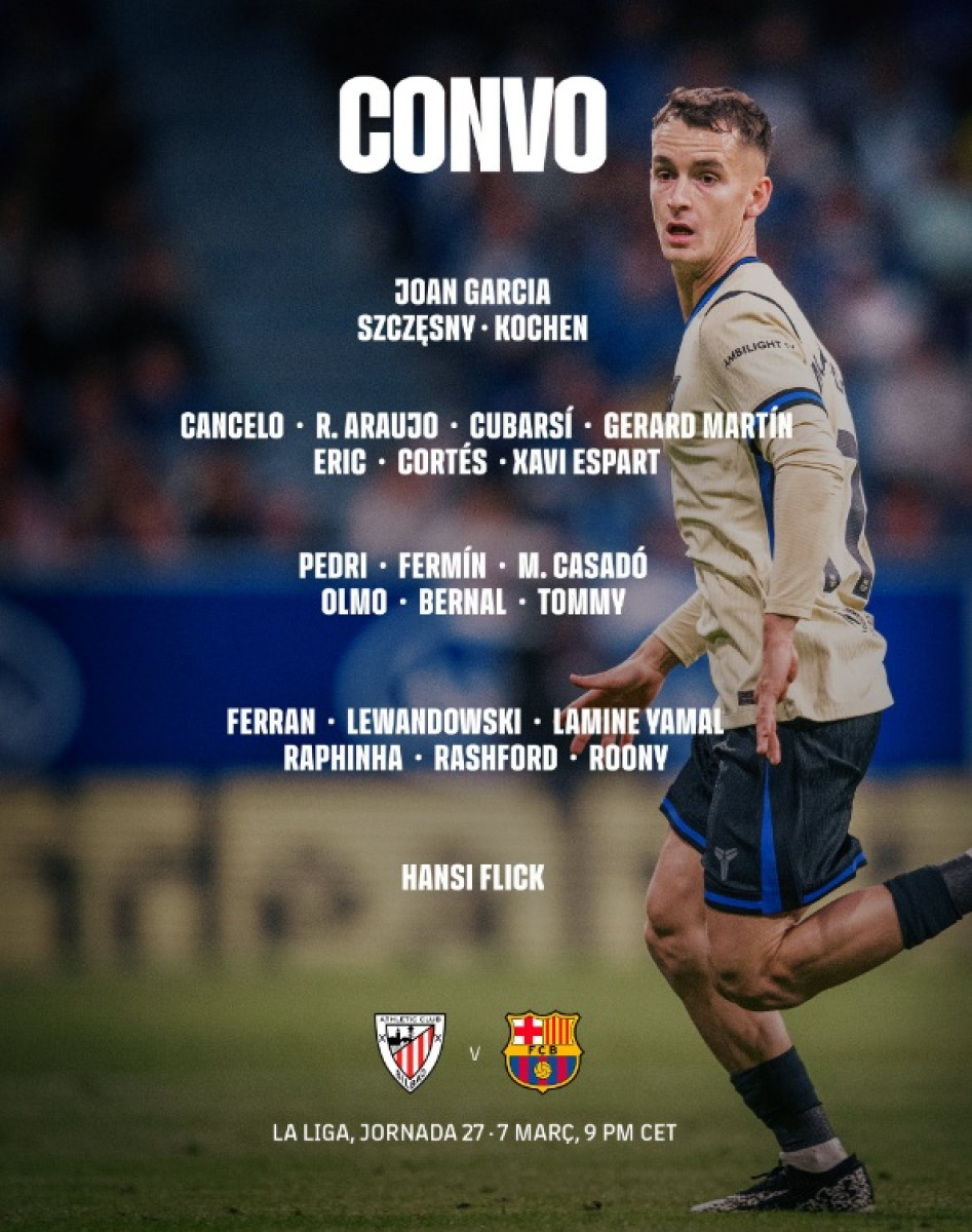 Barcelona: J. García; Cancelo, Cubarsí, E. García, Gerard Martín; Pedri, Olmo; Yamal, Fermín, Raphinha; Torres.
