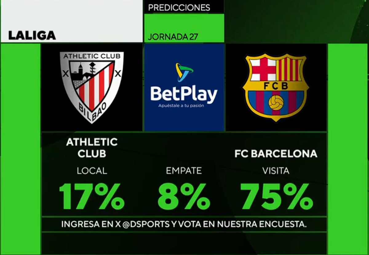 El duelo entre Barcelona y Athletic Bilbao será transmitido por DSports y su plataforma DGO en Perú, Argentina, Colombia, Chile, Ecuador, Uruguay y Veneziela.