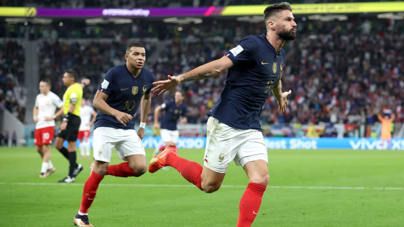 Giroud collected a pass from Kylian Mbappe in the 44th minute and sent a low shot with his left foot past Poland goalkeeper Wojciech Szczesny, his former teammate at Arsenal.