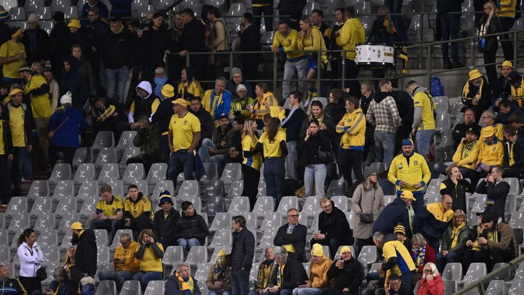 Belgium's crisis center asked citizens to avoid unnecessary travel, and the Swedish FA said in a message to the team's supporters on site that the Belgian police wanted supporters to stay in the arena for security reasons.