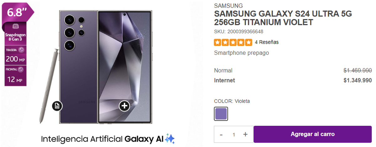 Un celular de alta gama y de los últimos presentados como el Samsung Galaxy S24 puede superar el millón y medio de pesos.