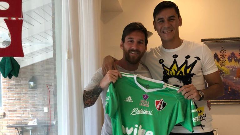 Las vísperas del Año Nuevo han traído una histórica postal para los aficionados al Atlas de Guadalajara, quienes a partir del 2018 podrán presumir que Lionel Messi, uno de los mejores futbolistas del mundo, posó sonriente con la camiseta de los rojinegros.