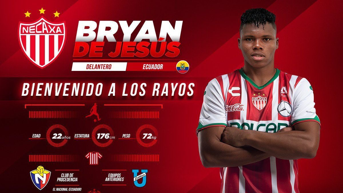 "Proveniente de @elnacionalec, el delantero Bryan de Jesús llega para reforzar el ataque de los Rayos. #BienvenidoBryan #ConElRayoEnElCorazón", escribieron los hidrocálidos en sus redes sociales.