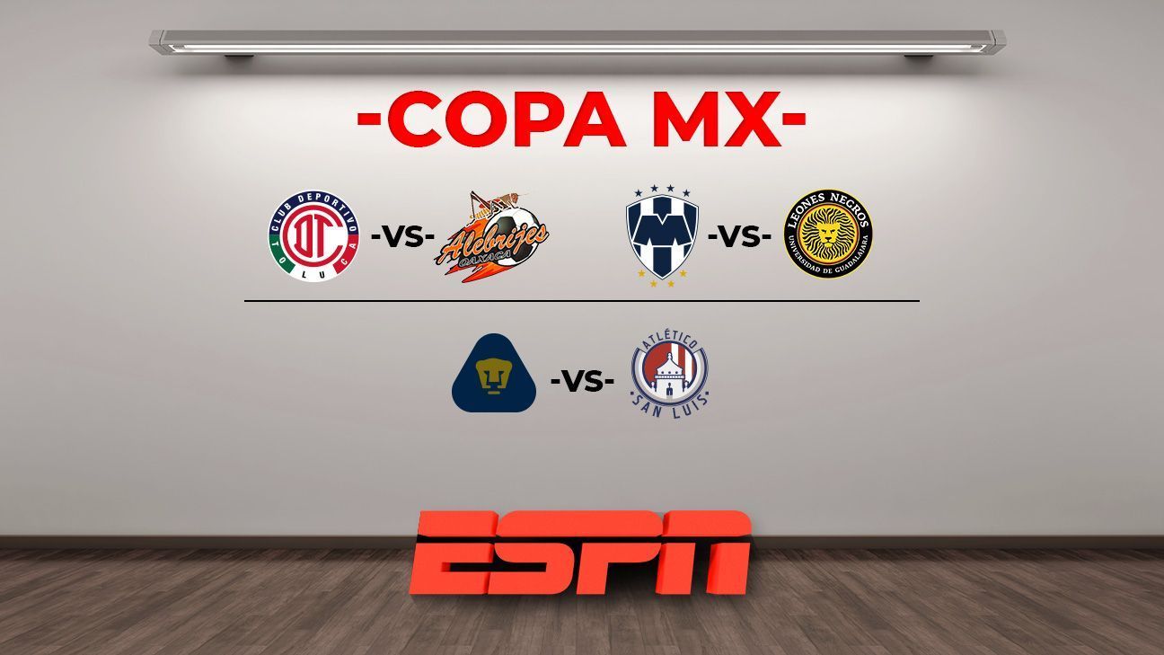 La jornada uno de la Copa MX concluyó con tres duelos que se celebraron este jueves entre Toluca - Alebrijes, Monterrey - Leones Negros y Pumas - Atlético de San Luis.