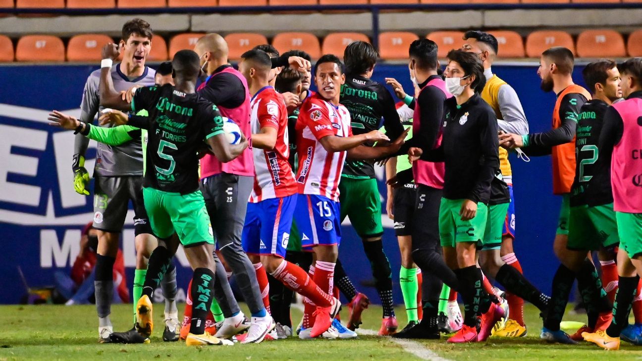 En un segundo video proporcionado a ESPN, el jugador de Santos suelta un manotazo hacia el elemento del Atlético de San Luis, Germán Berterame, en un conato de bronca que terminó con jugadores expulsados.