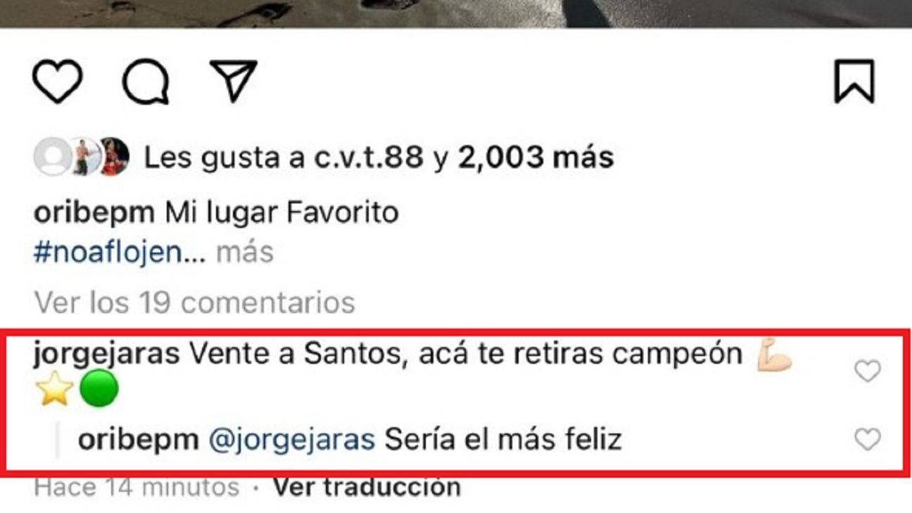 “Mi lugar favorito”, publicó Oribe Peralta en sus redes sociales, acompañado de una foto en la que domina un balón, con la playa de fondo. “Vente a Santos, acá te retiras campeón”, le sugiere un usuario de Instagram. “Sería el más feliz”, responde el todavía atacante de las Chivas.