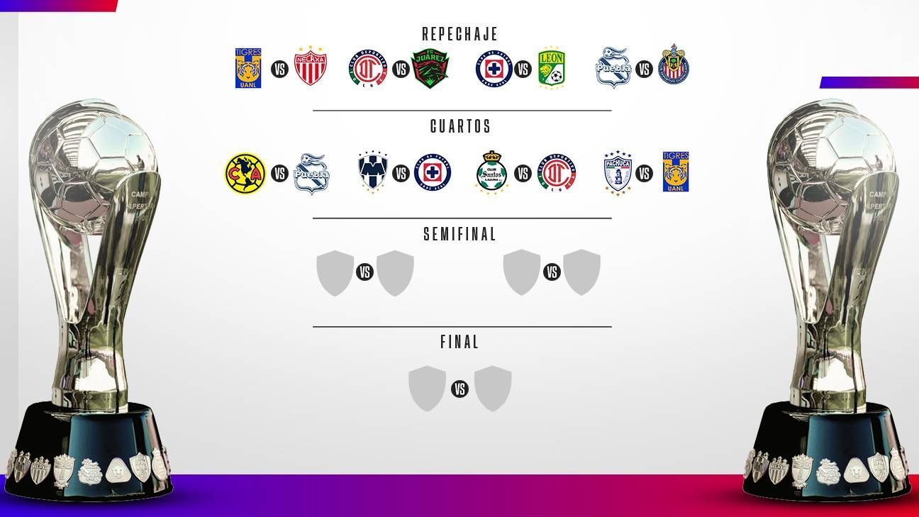 América, Monterrey, Santos y Pachuca obtuvieron el boleto a la ronda de eliminación directa gracias a que ocuparon los primeros sitios de la tabla general. Por su parte, Puebla, Cruz Azul, Toluca y Tigres obtuvieron su pase mediante la ronda de repesca a partido único.