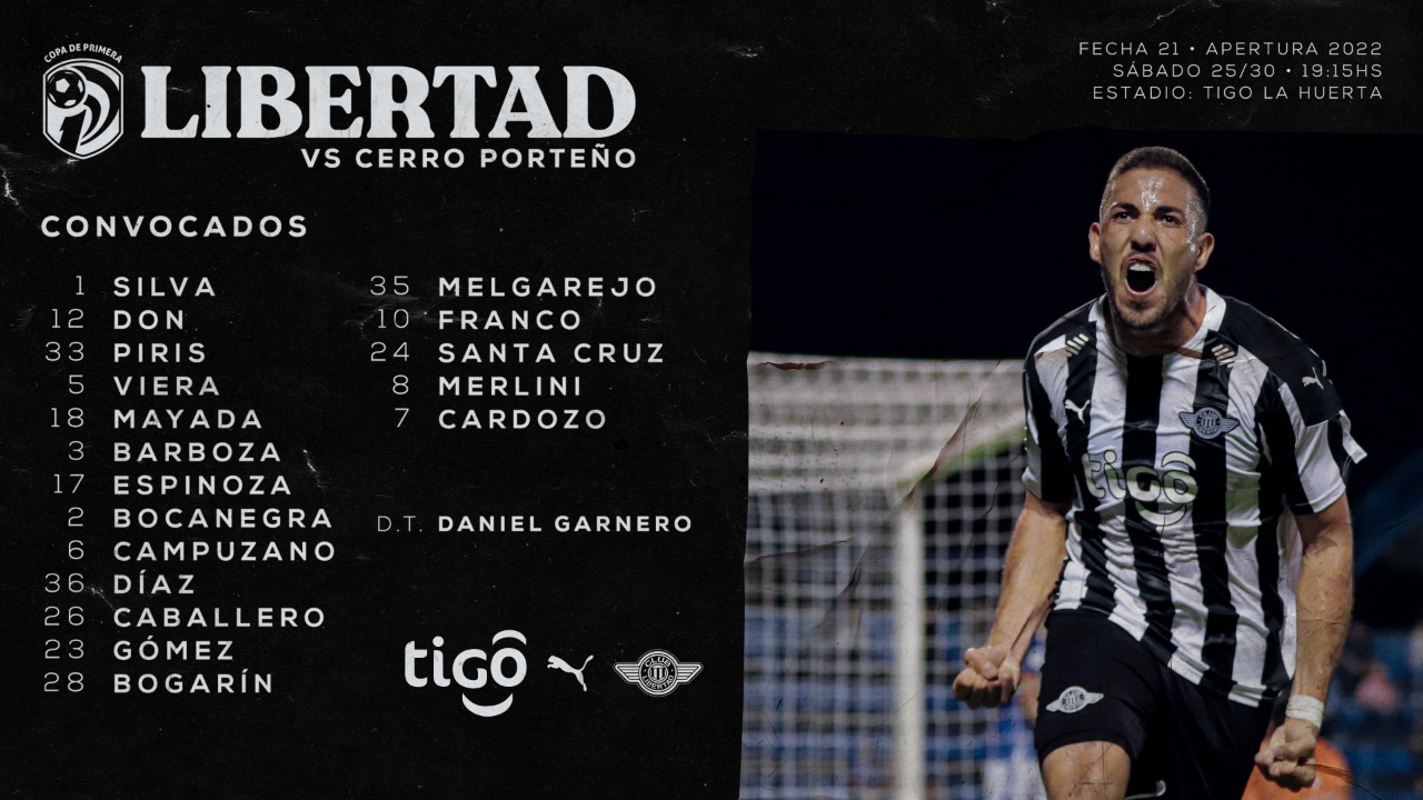 Convocados de Libertad para el duelo frente a Cerro Porteño.