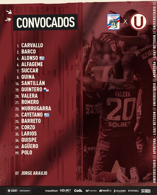 Estos son los jugadores convocados por parte de Universitario de Deportes.