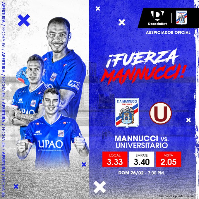 Esto dice la Casa de Apuesta para el juego entre Mannucci vs. Universitario.