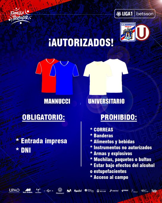 El juego entre Universitario – Mannucci está pactado para las 19:00 horas en el Estadio Mansiche.