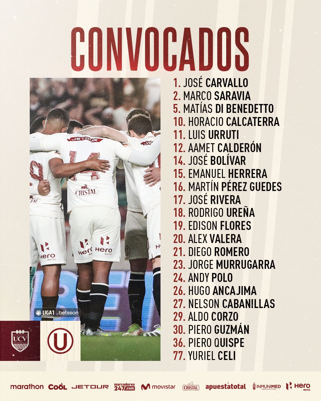 - alineaciones universitario vs césar vallejo