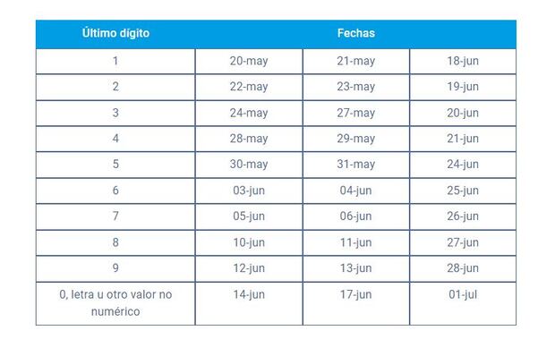 - Lunes 1 de julio: los ciudadanos cuyo último dígito de su DNI termina en 0.