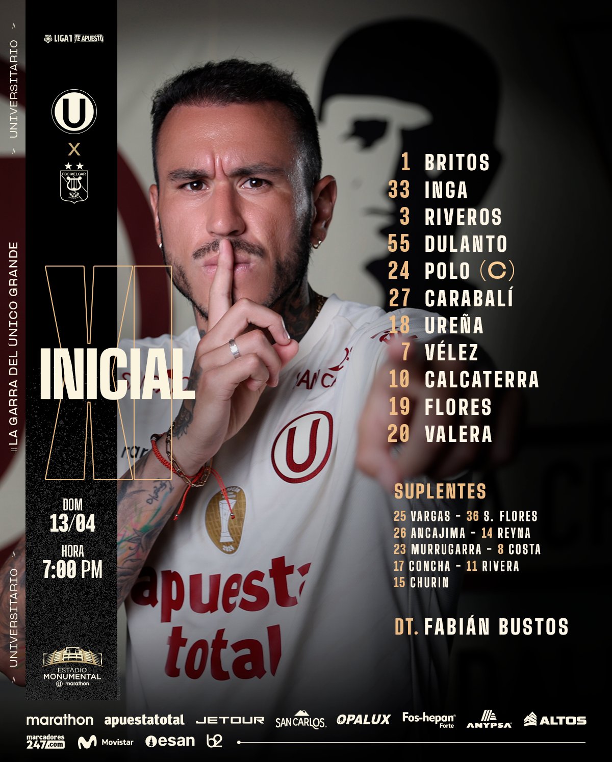 Universitario goleó 4-1 a Melgar en el estadio Monumental por la fecha 8 del Torneo Apertura, este domingo 13 de abril de 2025. El cuadro crema inició con abajo en el marcador tras el gol de Kenji Cabrera. Sin embargo, los locales supieron sobreponerse y lograron llevarse los tres puntos gracias a las anotaciones de Álex Valera, Jairo Concha y José Rivera.