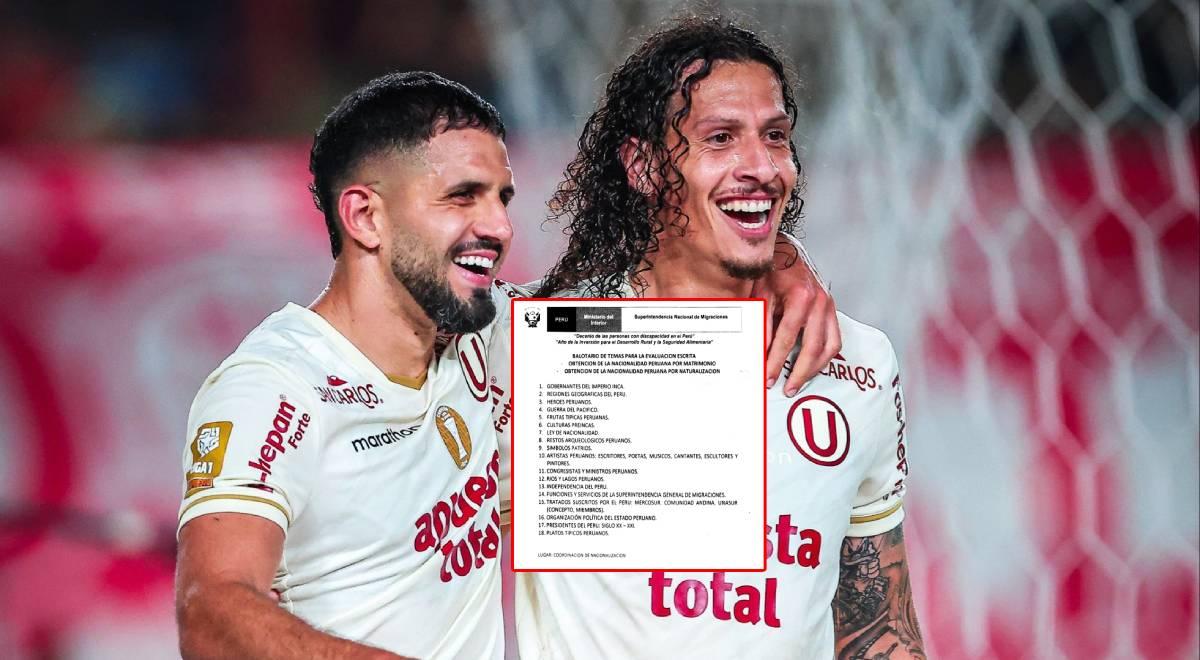 Tras haberse confirmado que Williams Riveros y Matías Di Benedetto no aprobaron el examen de nacionalización peruana, en su primer intento, se revelaron cuáles fueron las preguntas que les hicieron a los defensores de Universitario de Deportes. Ambos centrales deberán esperar hasta el último día hábil del mes (30 de enero) para poder rendir nuevamente la prueba y ver si finalmente dejan de ocupar plaza de extranjeros en la Liga 1 2026.