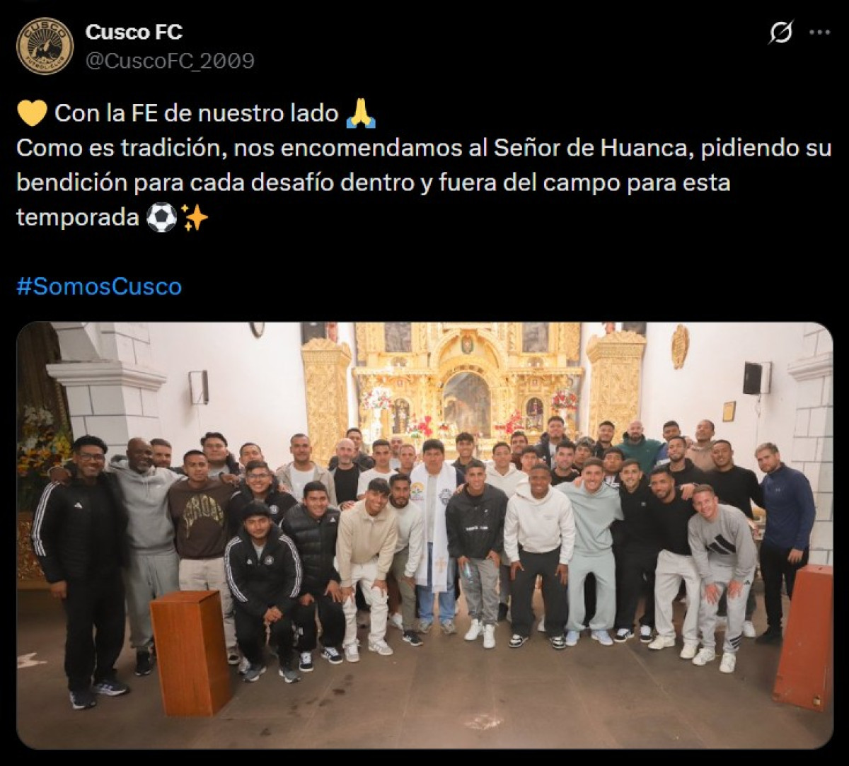 El plantel de Cusco FC se pone en manos del Señor de Huanca para una temporada llena de retos y sueños por cumplir.