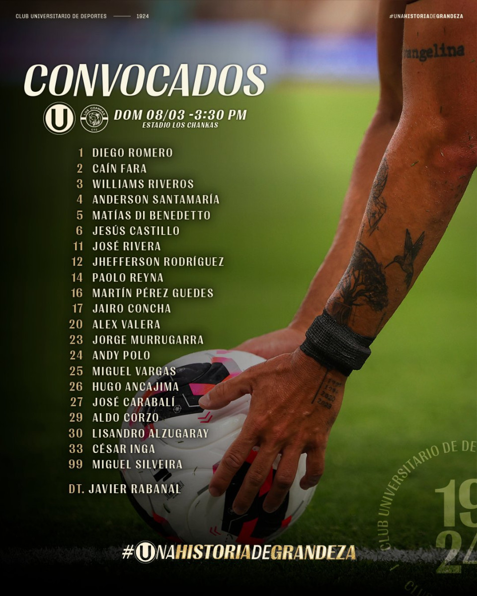 Repasa la lista de convocados que entregó Javier Rabanal, DT de Universitario, para su visita a Andahuaylas.
