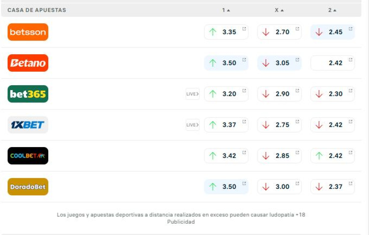 | Apuesta Total | 3.43 | 2.86 | 2.50 |