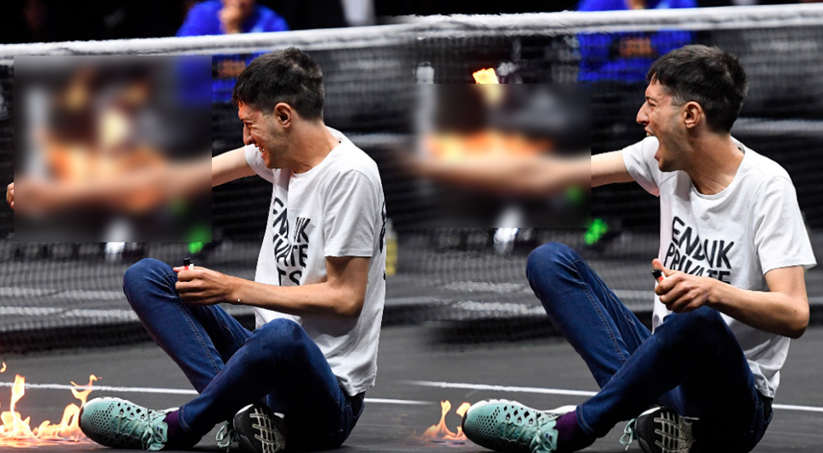 La Rod Laver Cup marcará el último partido oficial de Roger Federer. La leyenda del tenis decidió poner fin a su trayectoria y dentro de las emociones que se vivían en la pista del 02 Arena, un activista se robó la atención de los asistentes por unos minutos.
