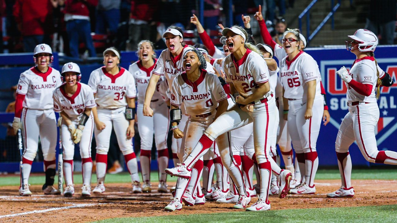 Oklahoma's first three batters of the fifth inning reached on hits -- after just four pitches -- and then Lee cleared the bases for an 8-2 lead. After a pitching change, Brito hit her 16th home run of the season.