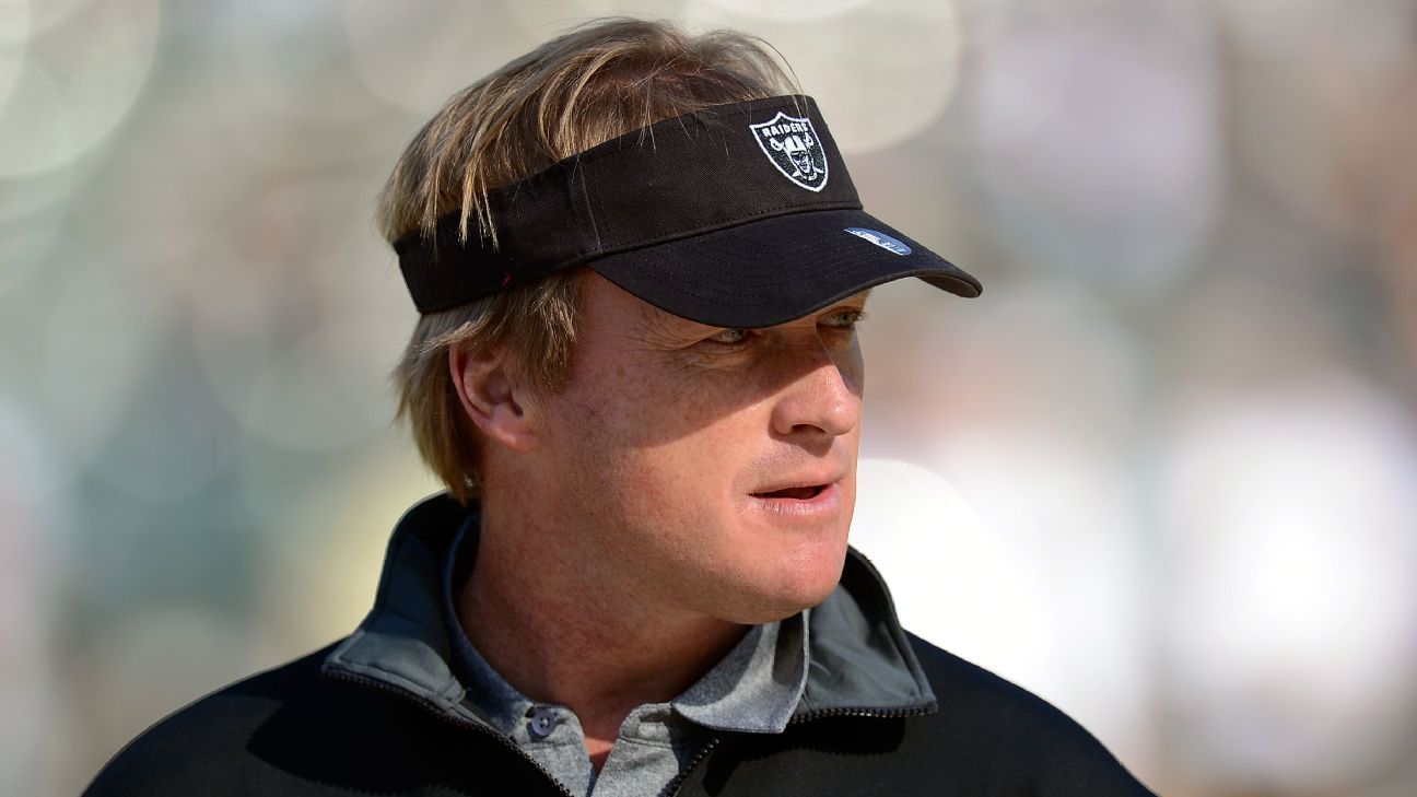 Gruden ha estado fuera de la liga por las últimos nueve años mientras sirve como analista para ESPN de "Monday Night Football". Tiene programado trabajar en el partido que será televisado por la cadena el sábado entre los Kansas City Chiefs y Tennessee Titans, y podría regresar a los Raiders tan pronto como la semana entrante.