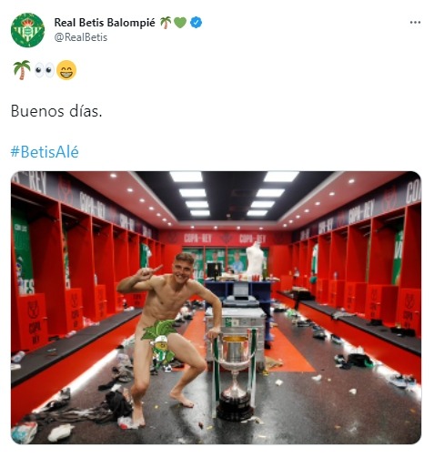 "Hoy se merece toda esta gente el título. Enhorabuena al Valencia porque también lo merecía", expresó Joaquín, quien posó nuevamente desnudo con la Copa del Rey. Ya lo había hecho cuando ganó el certamen con el Valencia.
