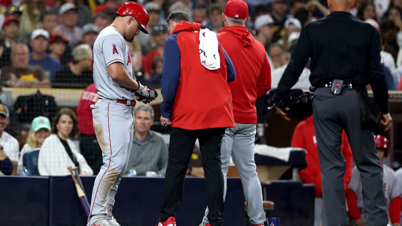SAN DIEGO -- Hours after placing All-Star outfielder Mike Trout on the 10-day injured list with a broken left wrist, the Los Angeles Angels saw their run of bad injury luck continue in their game Tuesday night against the San Diego Padres.