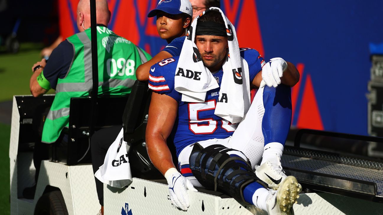 Tuvo que salir apoyado en un par de miembros del equipo médico de Bills y fue llevado a la carpa médica. Después de una primera evaluación fue llevado a los vestidores y se informó que no regresaría al partido.
