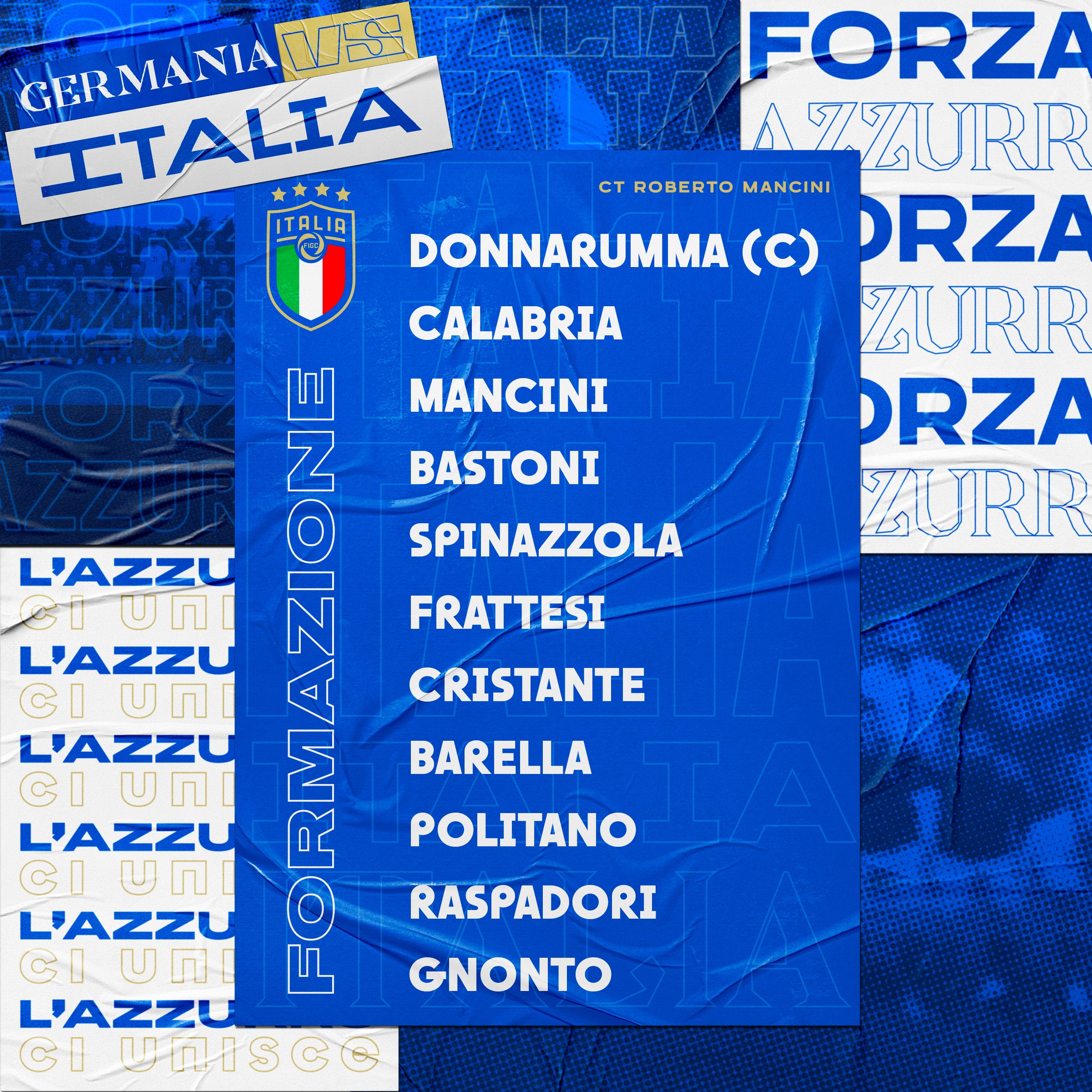 - Italia: Donnarumma; Di Lorenzo, Bonucci, Bastoni, Biraghi; Barella, Locatelli, Tonali; Bernardeschi, Belotti, Pellegrini.