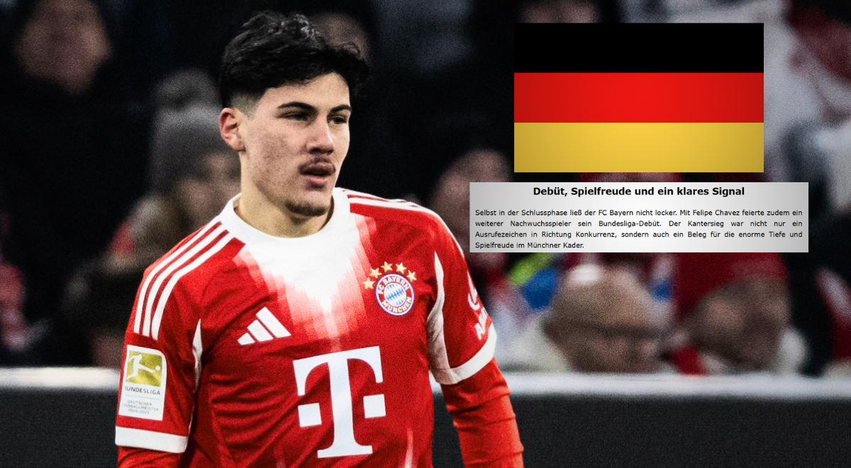 Vincent Kompany, técnico del Bayern Múnich, decidió hacer ingresar al campo del Allianz Arena al futbolista peruano Felipe Chávez en sustitución de Michael Olise. El gran debut del sudamericano en el equipo bávaro hizo que medios alemanes tomen cartas sobre el asunto y brinden sus respectivos comentarios sobre el volante de la selección nacional.