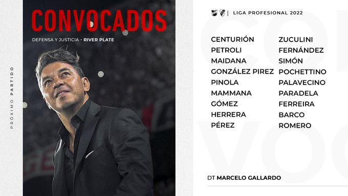 Convocados de River Plate para el partido contra Defensa y Justicia.