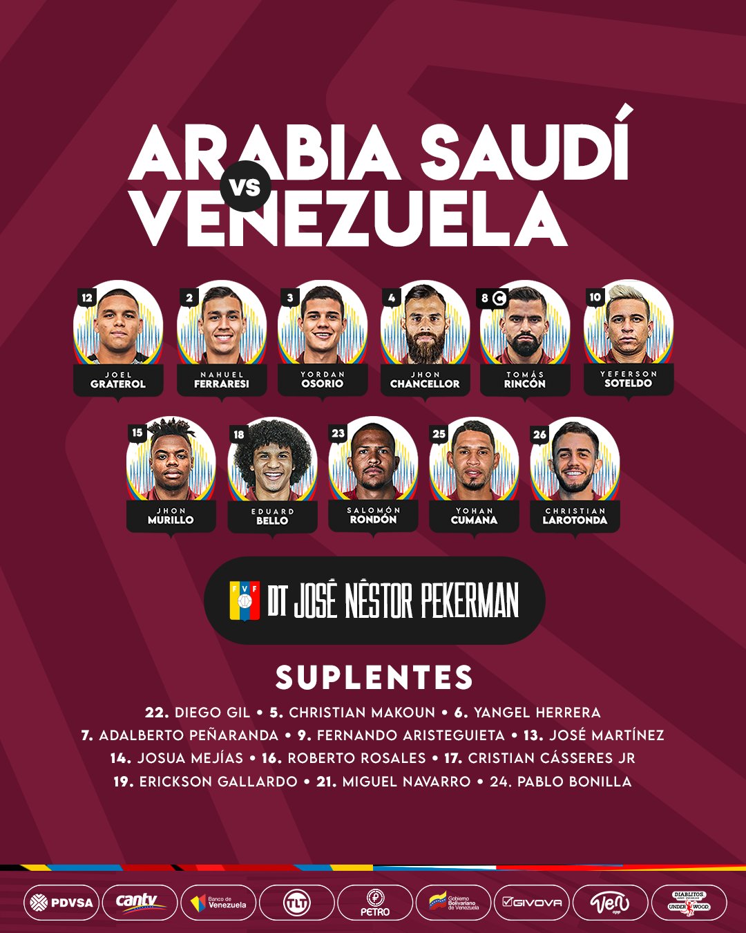 Así presenta Venezuela el duelo frente a Arabia Saudí.