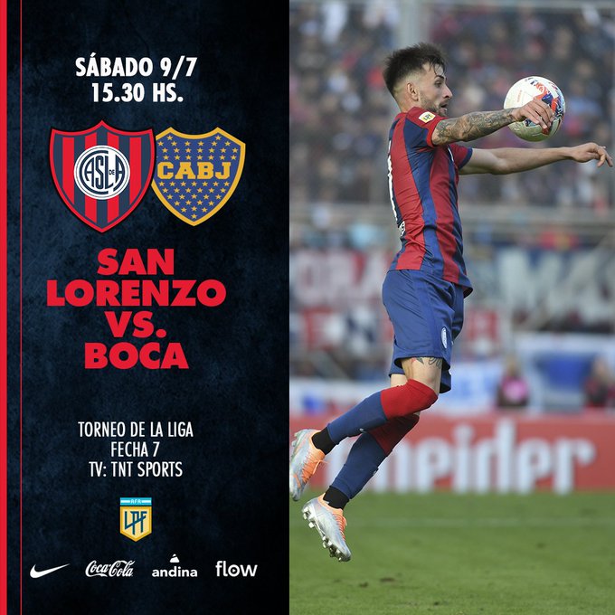 Boca Juniors visita a San Lorenzo por la jornada 7 de la Liga Profesional Argentina vía TNT Sports.