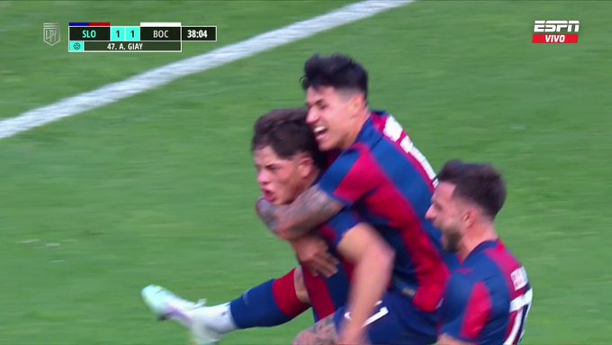 ¡Giay empata el partido para San Lorenzo! Aprovechó un rebote de Rossi dentro del área y no perdonó.