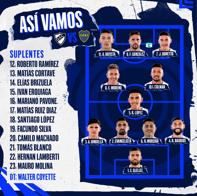 Boca Juniors: Javier García, Marcelo Weigandt, Facundo Roncaglia, Gabriel Aranda, Agustín Sandez; Cristian Medina, Esteban Rolón, Pol Fernández; Óscar Romero; Darío Benedetto y Gonzalo Morales.