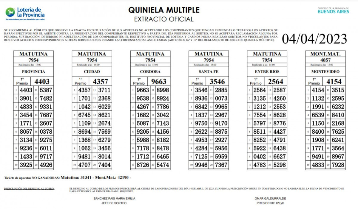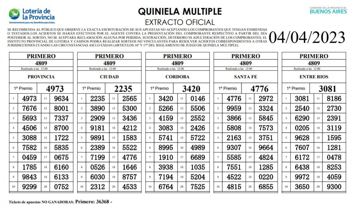 Si te perdiste los números ganadores de la pasada edición (lunes 03 de abril) de la Quiniela Nacional y Provincia, puedes ingresar al siguiente LINK.