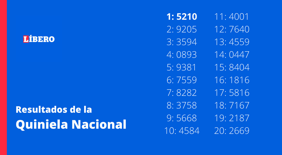 El próximo sorteo de la Quiniela Nacional y Provincia es La Vesperina. Los resultados estarán disponibles en la web de Diario Líbero.